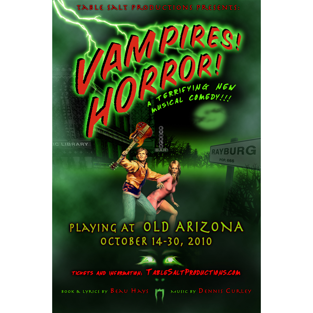 Vampires! Horror! — a brand new rock musical — is coming to the Old Arizona!  With music by Dennis Curley and book and lyrics by Beau Hays, this campy show gleefully rides the blazing popularity of the Twilight series, the Anne Rice vampire books, and such television classics as Buffy the Vampire Slayer, Angel, Forever Knight, Moonlight, Being Human, The Vampire Diaries, and True Blood!